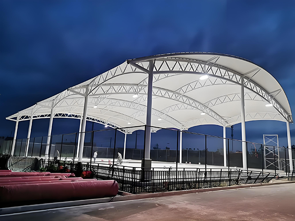 常用于商业综合体雨棚、体育场馆附属设施、交通枢纽遮阳棚、景观膜结构、工业厂房采光顶等,尤其适合需要平衡性能、成本与美观的中小型至中型项目。